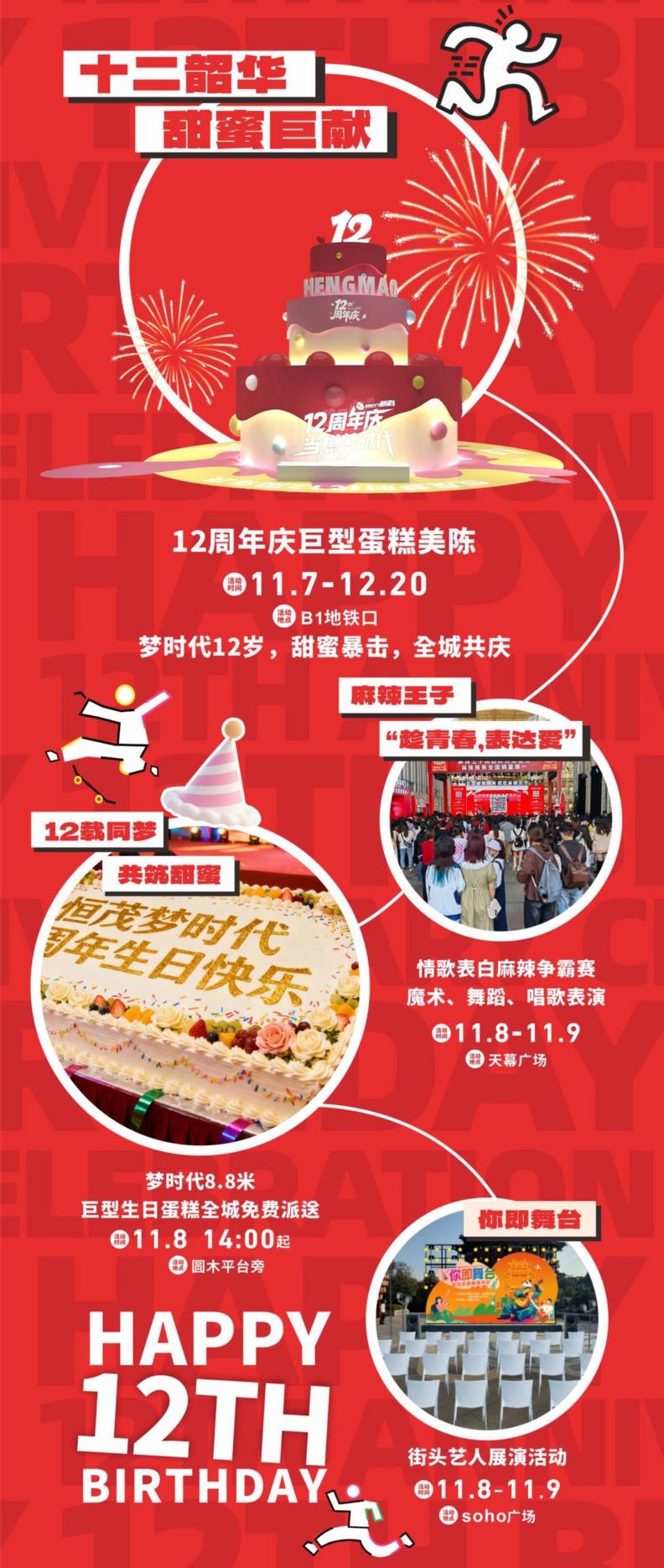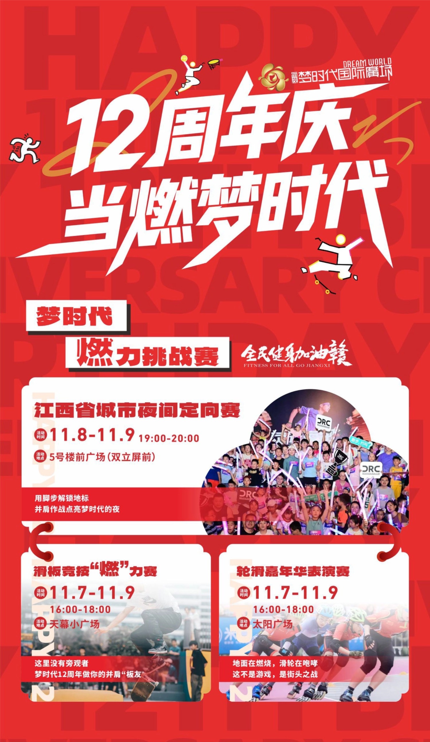 南昌恒茂梦时代12周年庆,11月7日-9日即将盛大启幕,涵盖赛事、表演、美食、直播等多元板块,为市民打造一场集运动、潮流、美食、娱乐于一体的城市狂欢盛宴。